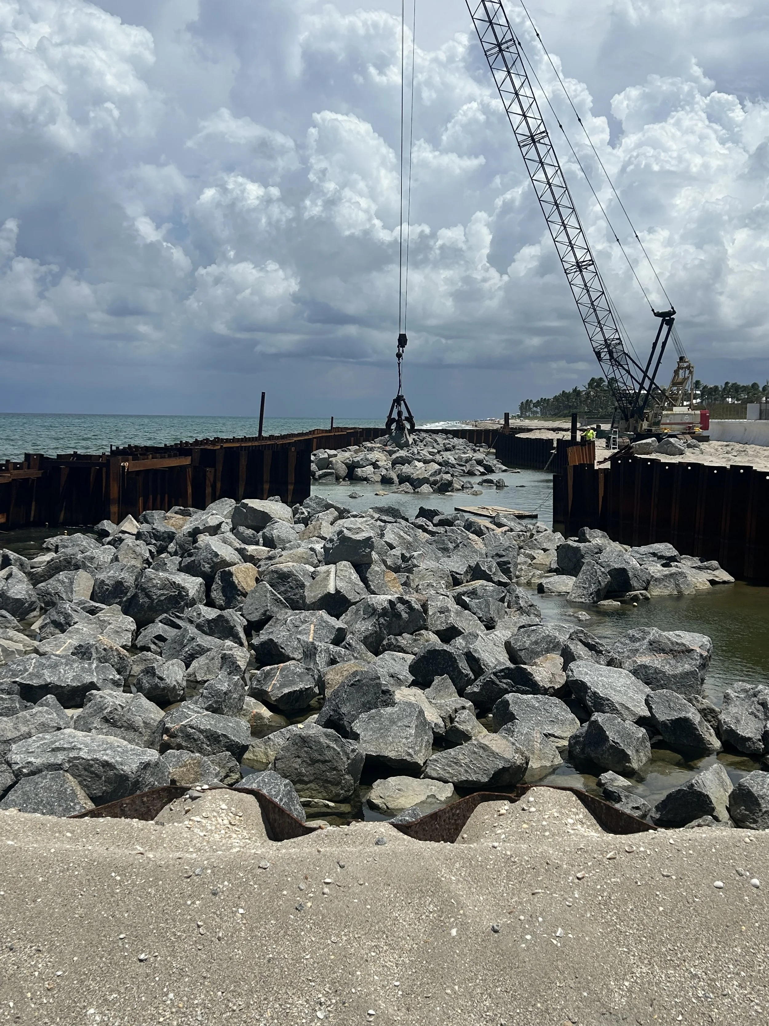 Along the shoreline between The Breakers Palm Beach and the Estée Lauder estate in Palm Beach, FL new breakwaters were constructed to strengthen and protect the property line.